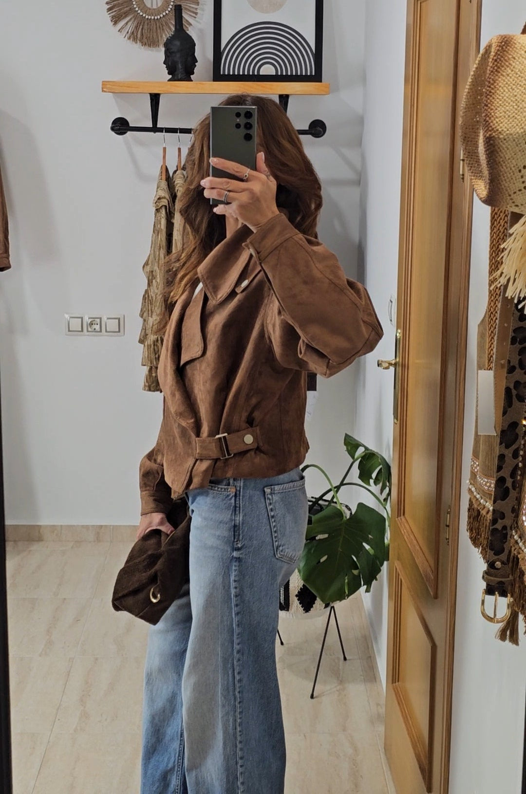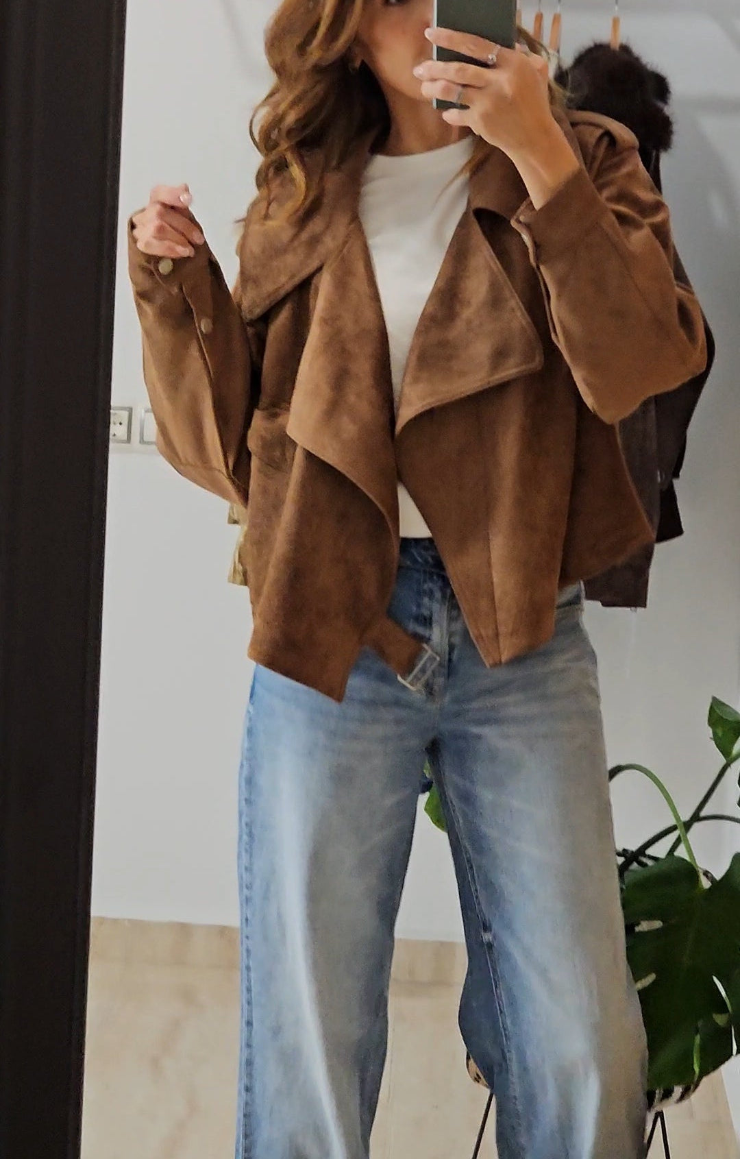 Cazadora efecto ante, incluye bolsillos centrales, en el interior incluye forro.