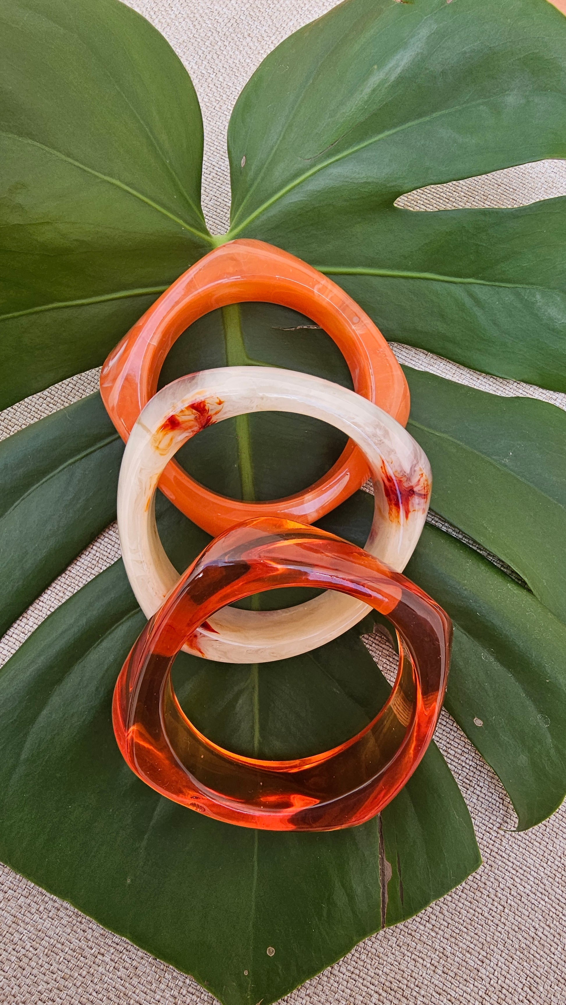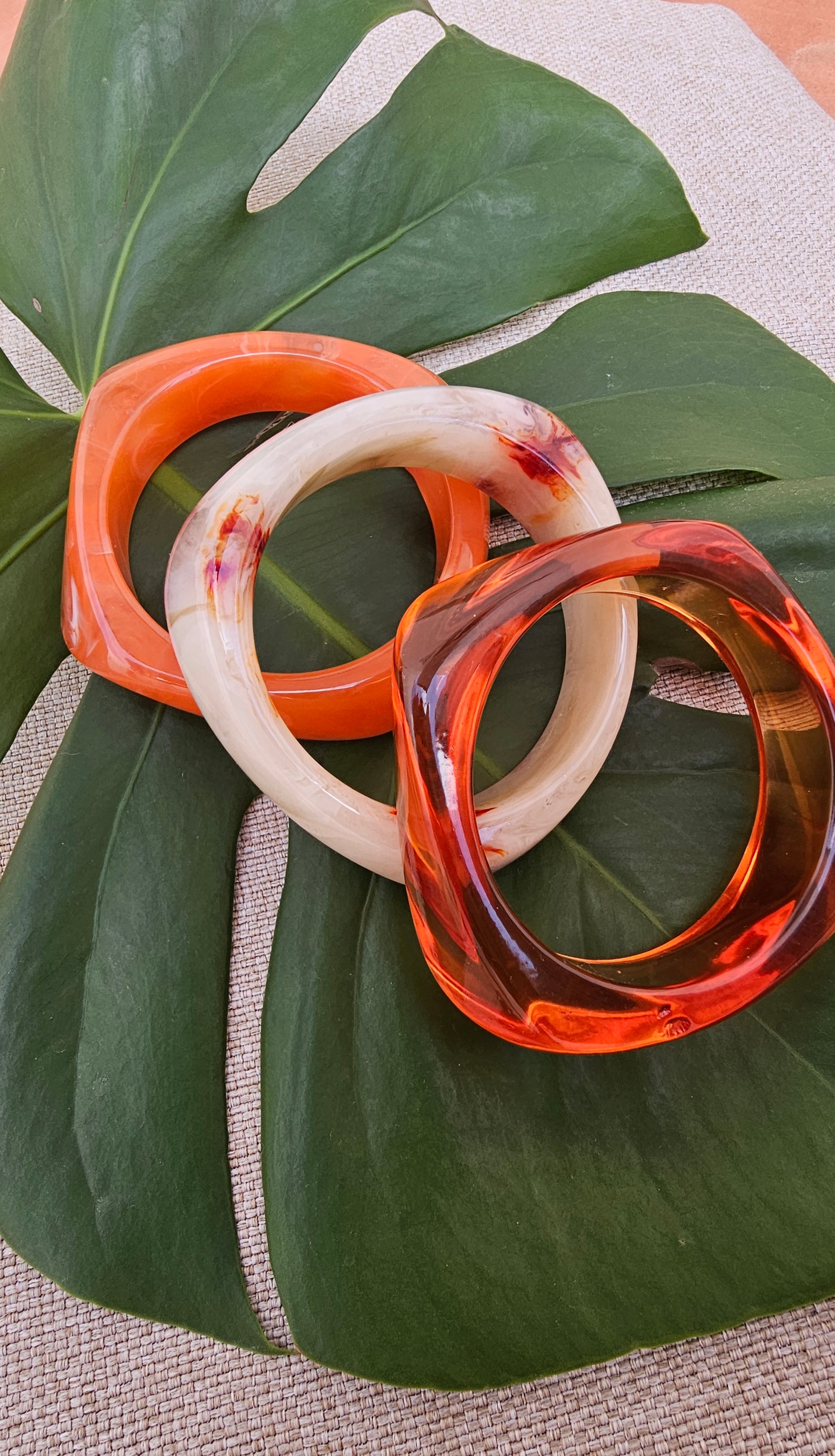 Completa tus looks veraniegos y hazlos únicos, con los brazaletes ámbar en tonos anaranjados y marfil ideales.