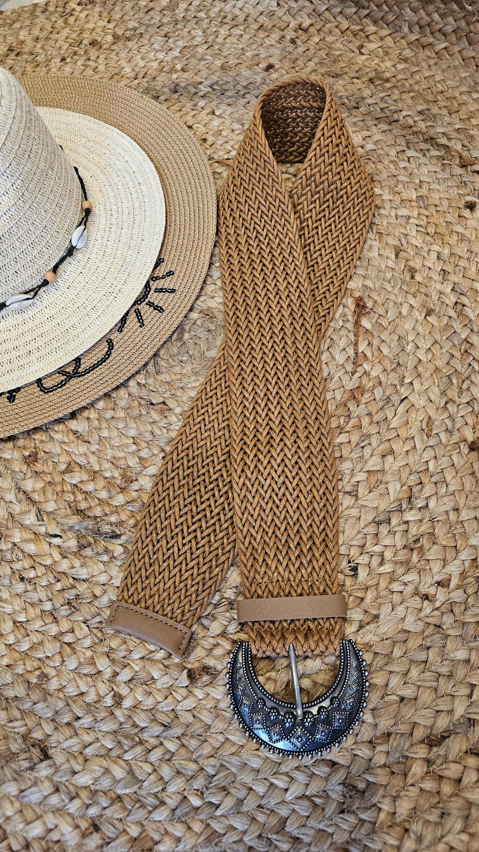 Cinturón trenzado con detalles en hebilla tachuelas, largo 1,00cm