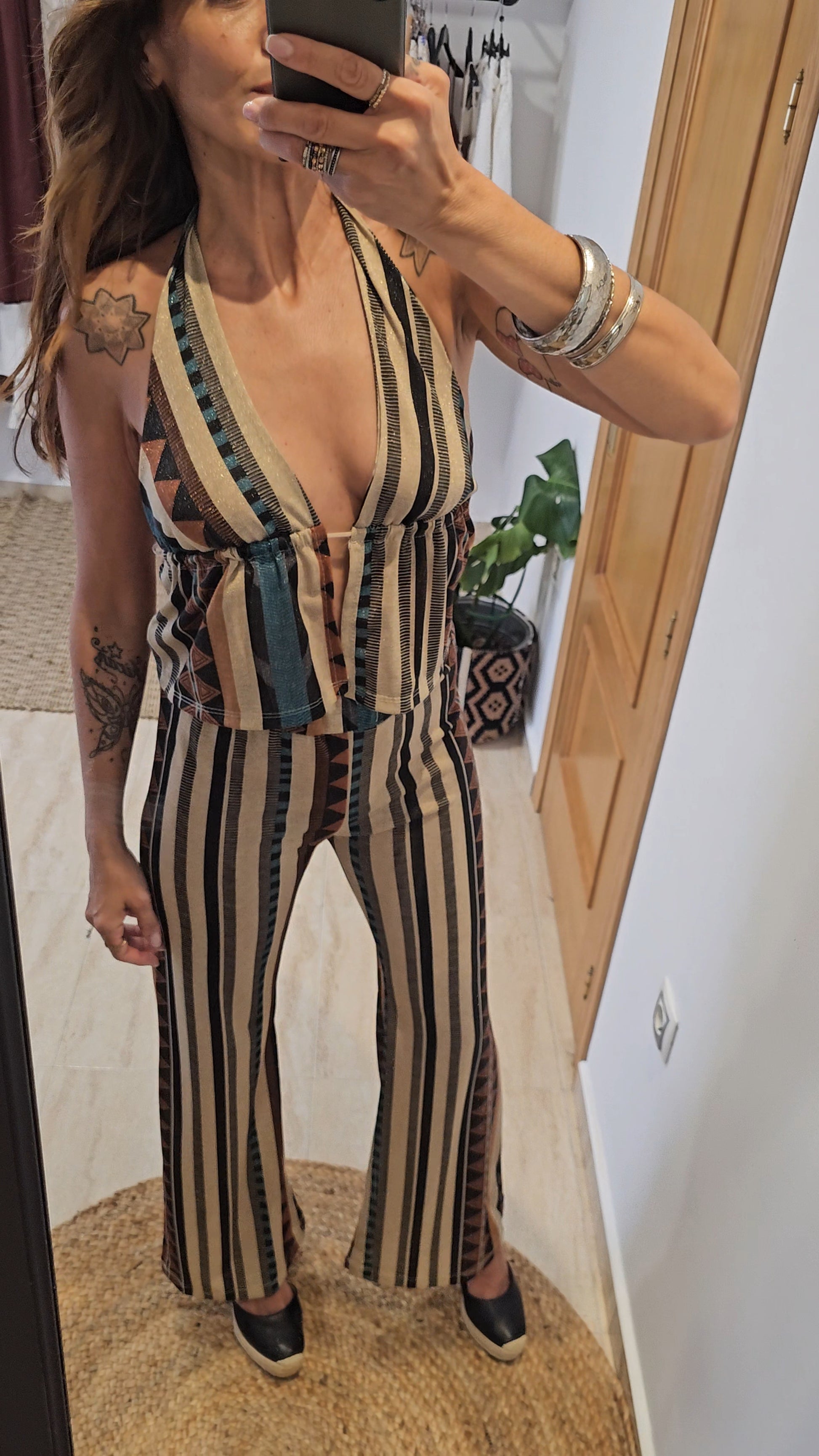 Este conjunto es pura alma, una mezcla perfecta, diseño, tonalidades y comodidad, ideal para esas noches de verano, top ajustable en la zona del cuello y pantalón con elástico en la zona de la cintura.